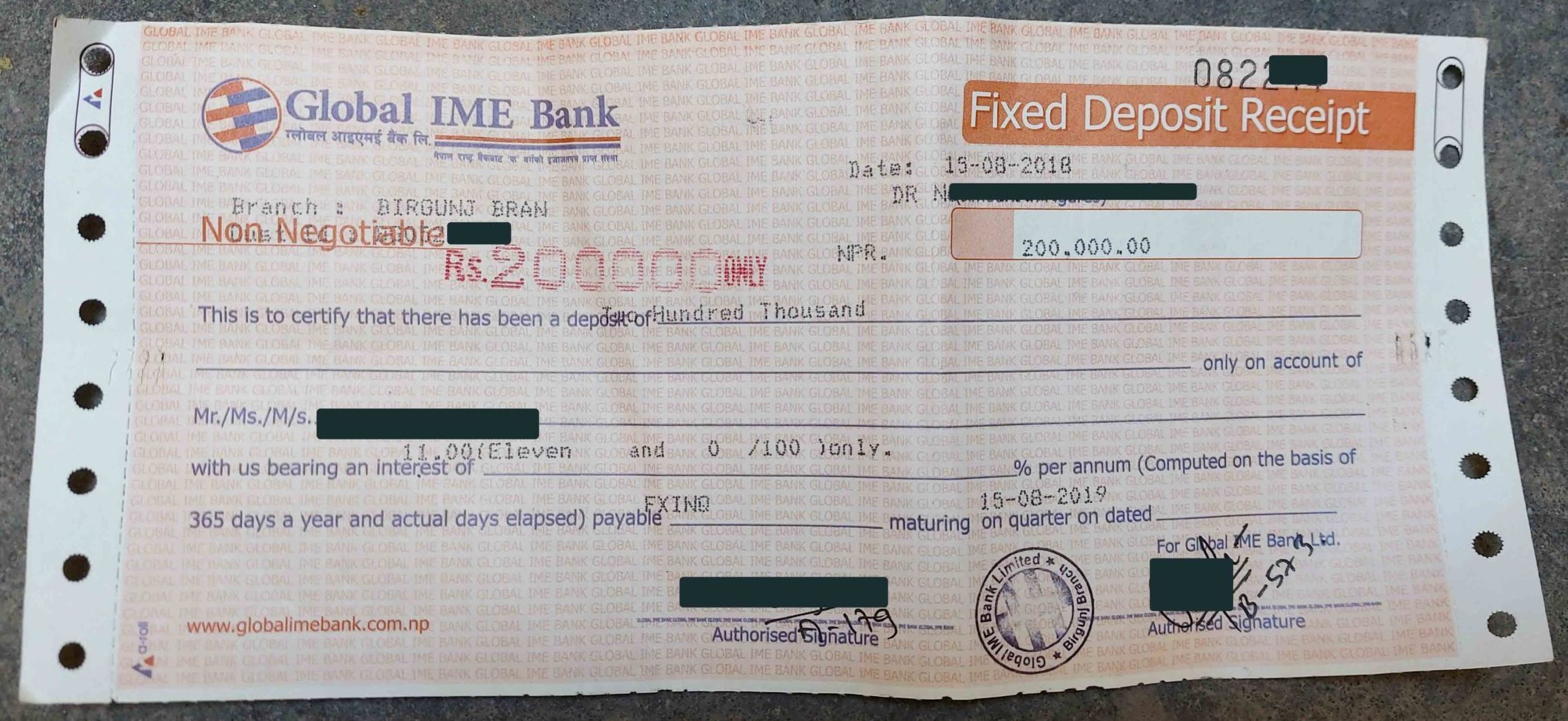 The central bank of Nepal,Nepal Rastra Bank has directed all A class banks to to maintain interest rate not more than 9.25% annually on fixed deposit. However the rate has been slashed to 8.25%-8.75% owing to current COVID -19 pandemic .